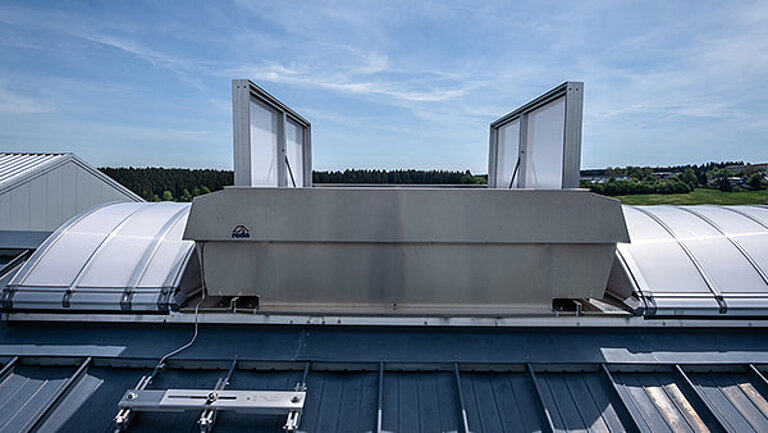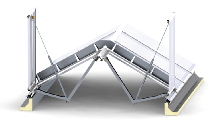 CI-System Smoke Lift M / kombinationsfløj M – kreative sikkerhedsløsninger til glastagskonstruktioner.