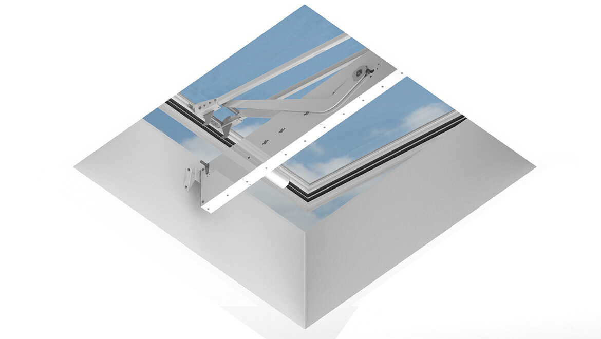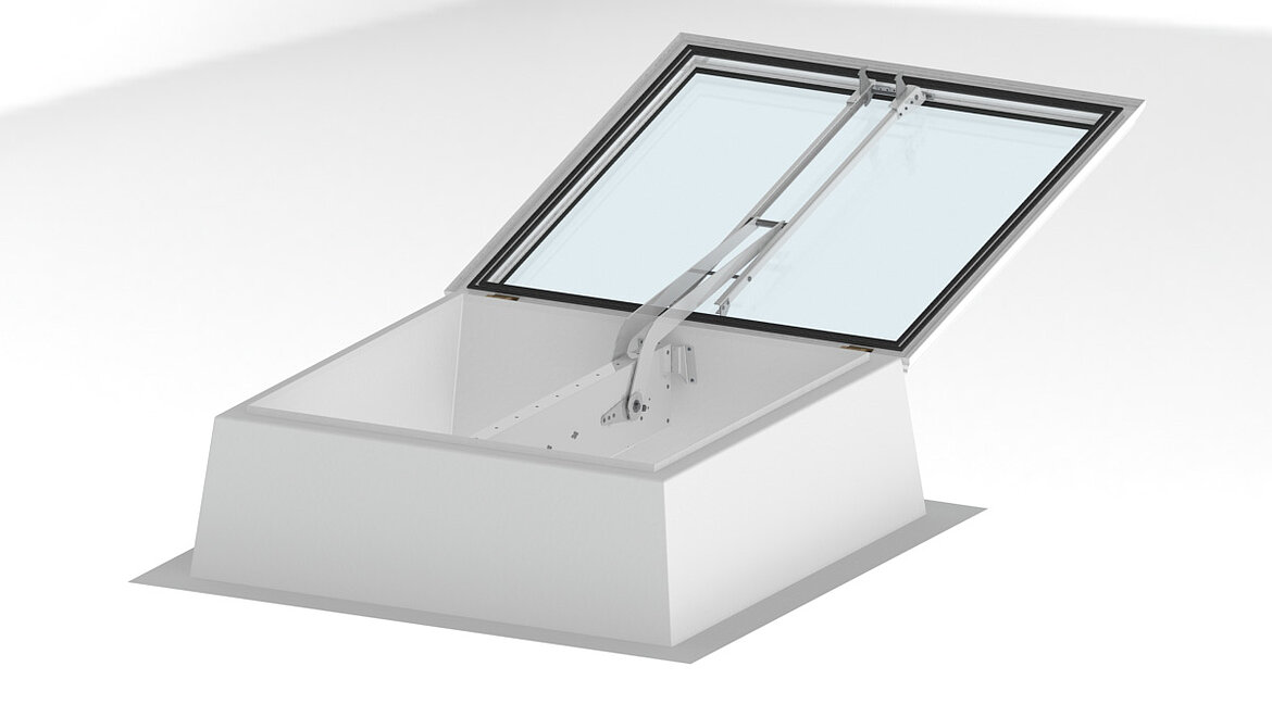 Det nyudviklede Smoke Lift Glass Skylight F100 forener fordelene ved glasplanlyset Glass Skylight F100 med fordelene ved et elektrisk brandventilationssystem godkendt jf. EN 12101-2.